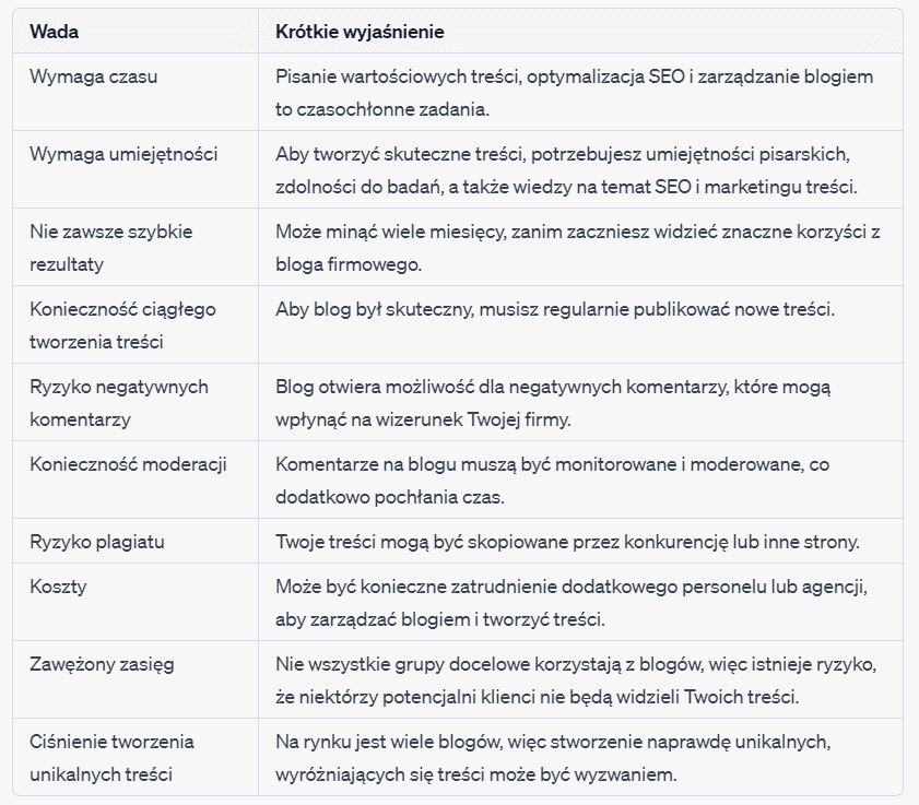 Czy blog firmowy ma wady? Tak i to całkiem sporo